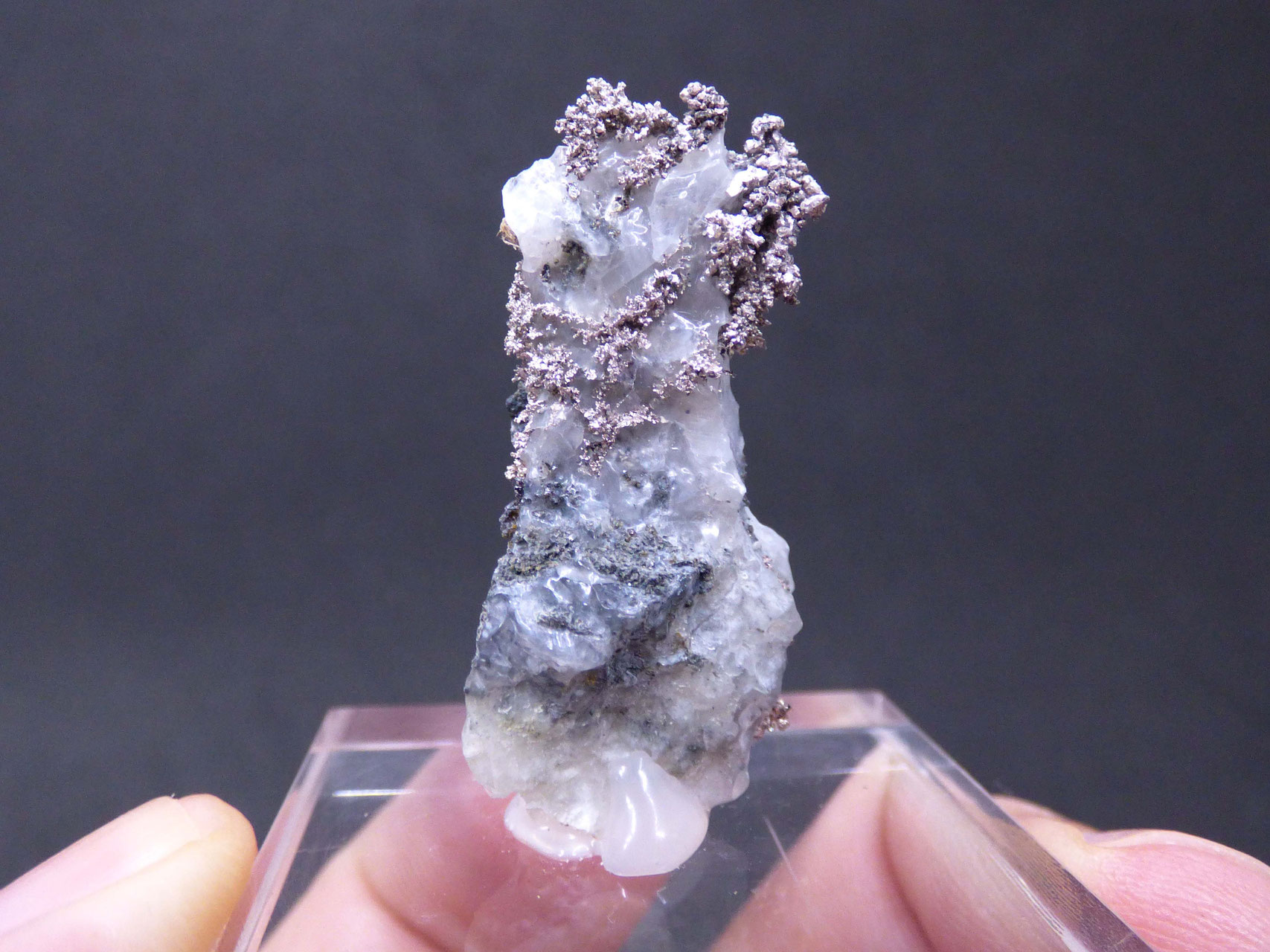 128P. PLATA NATIVA, ALLARGENTUM Y DYSCRASITA EN CALCITA
