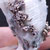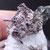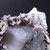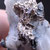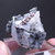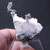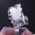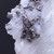 Tenemos el Allargentum en cristales muy definidos que aparece intercrecido con Plata nativa y Dyscrasita (color negro), formando crecimientos aéreos en matriz. También contiene cristales de Cuarzo blanco en el lateral.