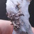 Tenemos el Allargentum en cristales muy definidos que aparece intercrecido con Plata nativa y Dyscrasita (color negro), formando crecimientos aéreos en matriz.