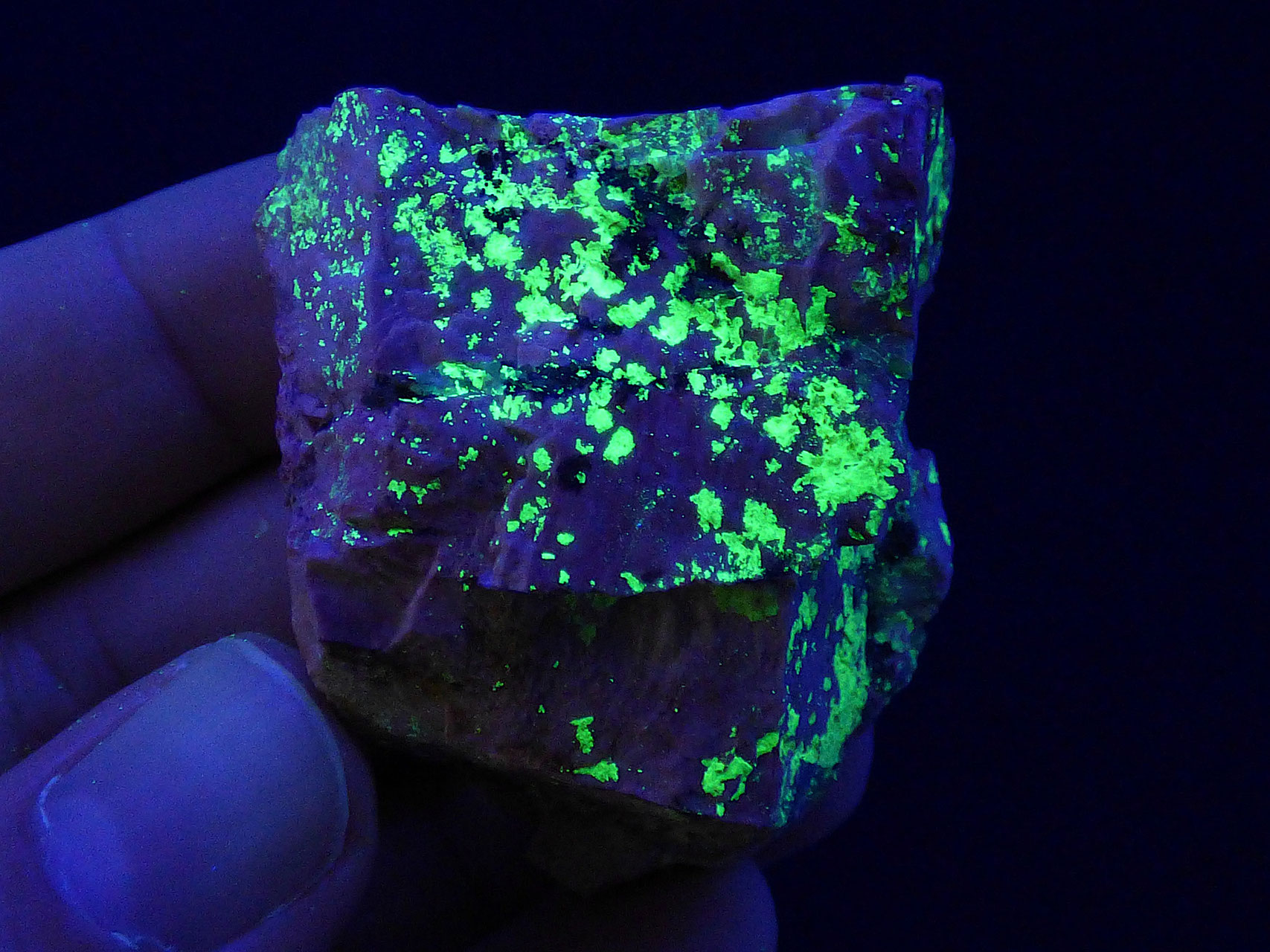 En esta cápsula se encuentran trazas de otros minerales con fluorescencia a luz uv, además de una posible mezcla de minerales como Torbernita, Saléeita, Autunita, Cuarzo, Sabugalita y Gummita.