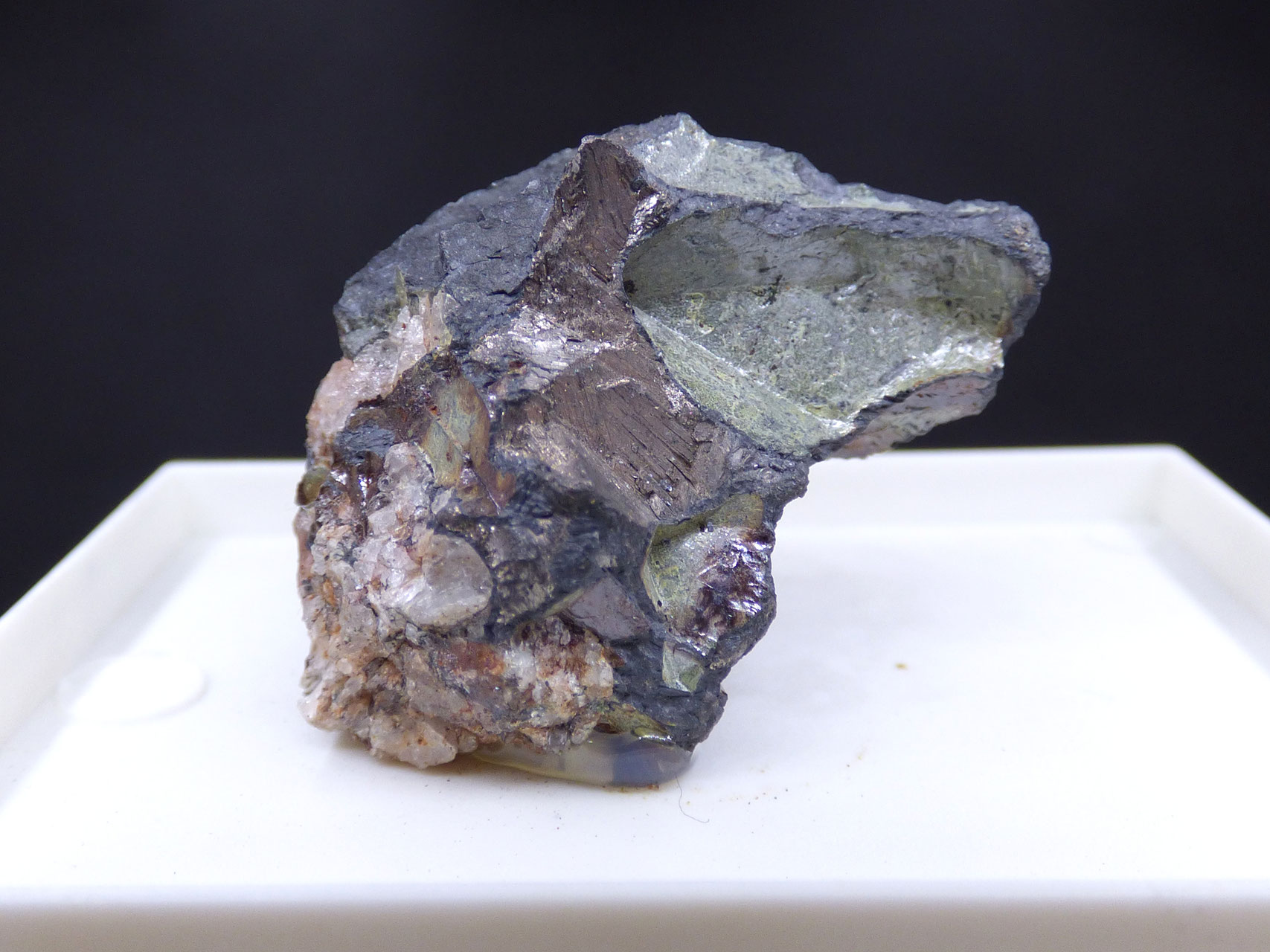 Una pieza muy rica en mineral. La Galenobismutita se presenta en cristales subédricos, muy brillantes y, en algunos casos, idiomórficos en el interior del Cuarzo.