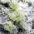 Cristales de Sabugalita de color amarillo verdosos sobre matriz, con una impresionante fluorescencia a luz ultravioleta. Tiene mineral salpicado por toda la matriz pero en la parte superior es donde tiene la mayor concentración.