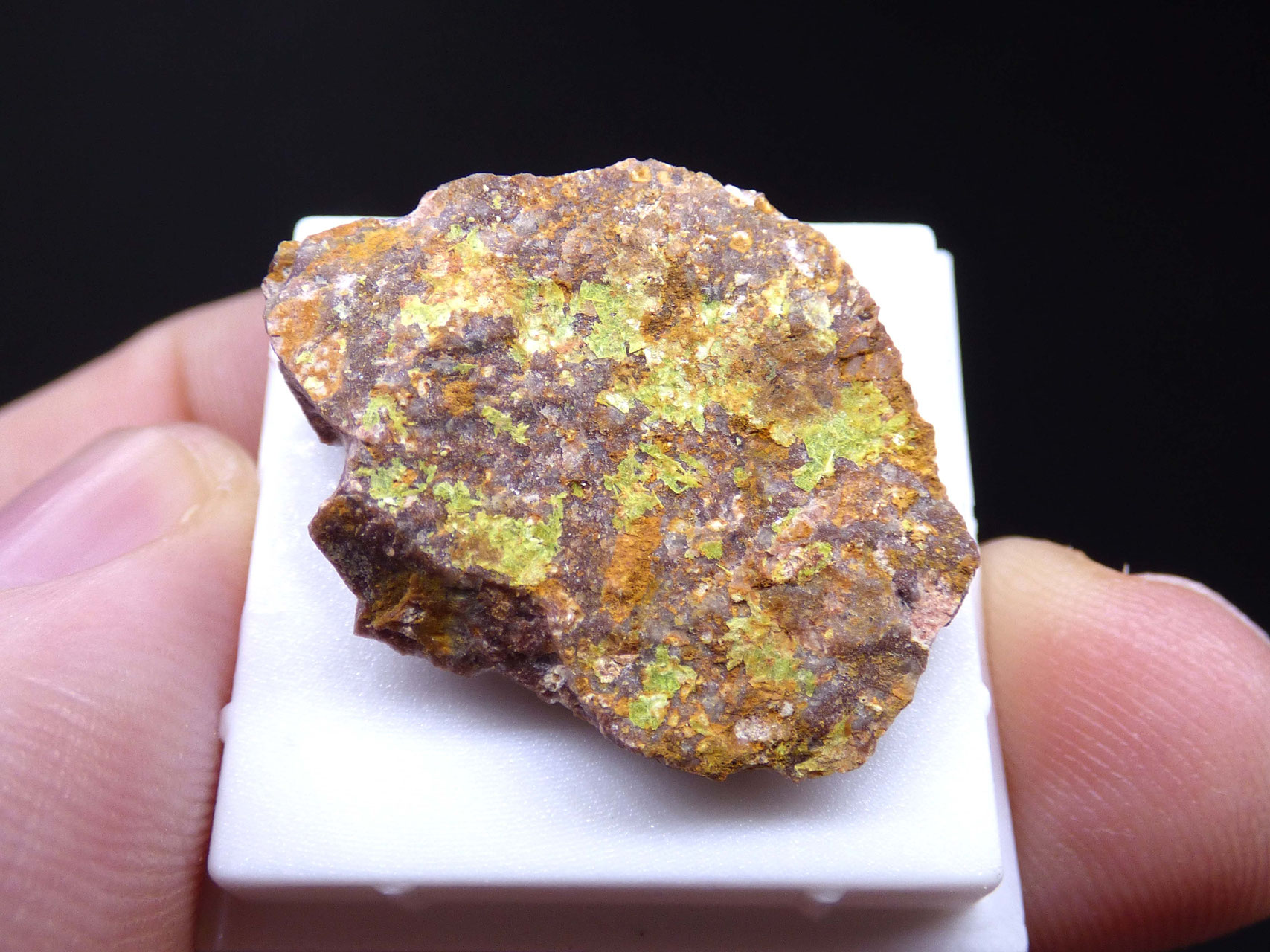 Extraordinaria y exclusiva combinación de minerales únicos y raros a nivel mundial con una mezcla de especímenes en matriz de roca lamproíta que se remonta a una antigüedad de entre 5 y 8 millones de años siendo una chimenea volcánica. En este espécimen encontramos rápidamente cristales de Armalcolita-pseudobrookita, Enstatitas y Tridimita aunque la en la matriz de este espécimen se puede encontrar Calcita, Sanidina, Ópalo hyalita y Flogopita entre otros muchos minerales buscando con paciencia y disfrute. Se incluye dentro de una urna de plástico transparente para su protección y conservación.